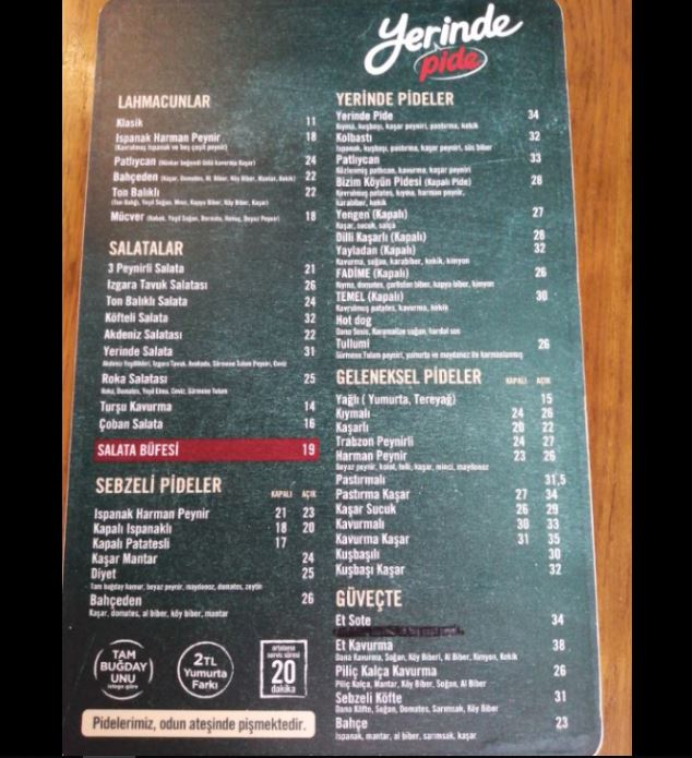 uluslararası, Akdeniz veya Türk mutfağının lezzetlerinden tatmak istiyorsunuz ve akşamınızı geçirmek istediğiniz size uygun bir restoran arayışında mısınız? “Yerine Pide” restoranımıza hoş geldiniz. Harika yemeklerimizle sizleri şımartmaktan ve ziyaretinizi özel kılmaktan dolayı büyük memnuniyet duyarız. nn Müşterilerimize ayrıca vejetaryen yemekler de sunuyoruz – böylece herkes aradığı şeyi bulabilir. Yemekte sağlığınıza dikkat ederken işinizi olabildiğince kolaylaştırmak ve sağlıklı yemeklerin ne kadar lezzetli olabileceğini size göstermek istiyoruz.nn Stil sahibi dış mekanımızın ortamı görülmeye değer. Akşam geç saatlerinde dahi konfor sunmak için ısıtılan terasımızda harika vakit geçirebilirsiniz. Her havada rahat ve iyi hissetmeniz için Klima sistemine sahibiz.